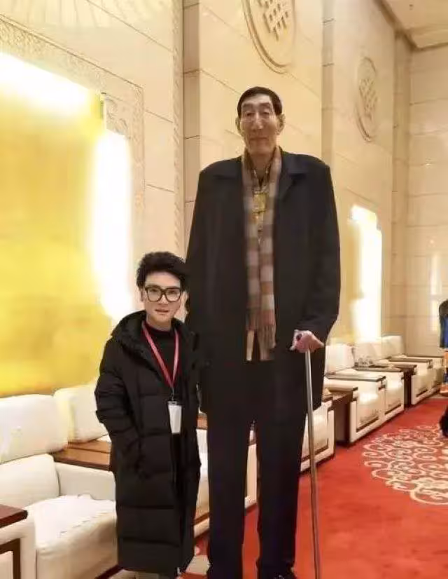 2.36米高的鮑喜順早已是這個小城不大不小的一個名人,幾乎相當於兩個普通成年人高的他,基本上一上街就能吸引住旁人的目光。