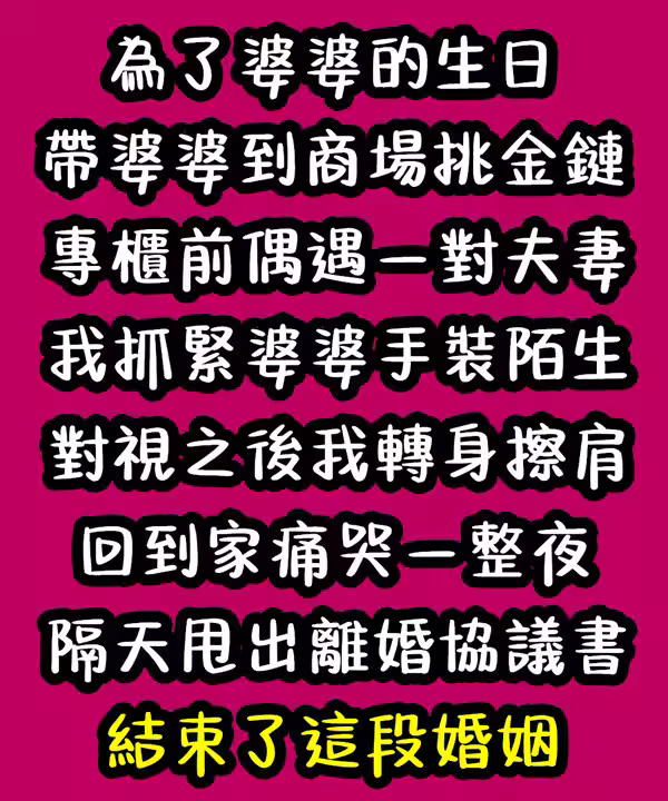 婆婆生日我去商場買禮物,見到對面走來一對夫妻,第二天我結束了婚姻