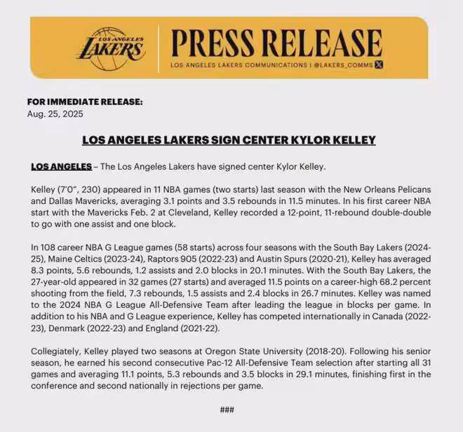 正式簽約加盟!再見,湖人太子爺!永別了,NBA!