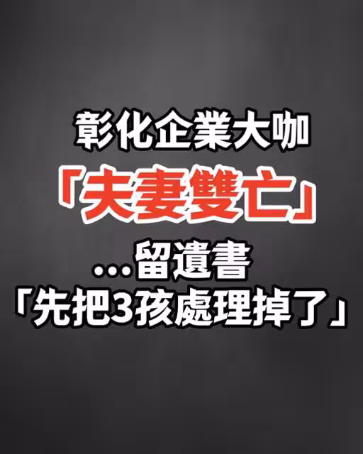 彰化企業大咖「夫妻雙亡!」留遺書「先把3孩處理掉了...」