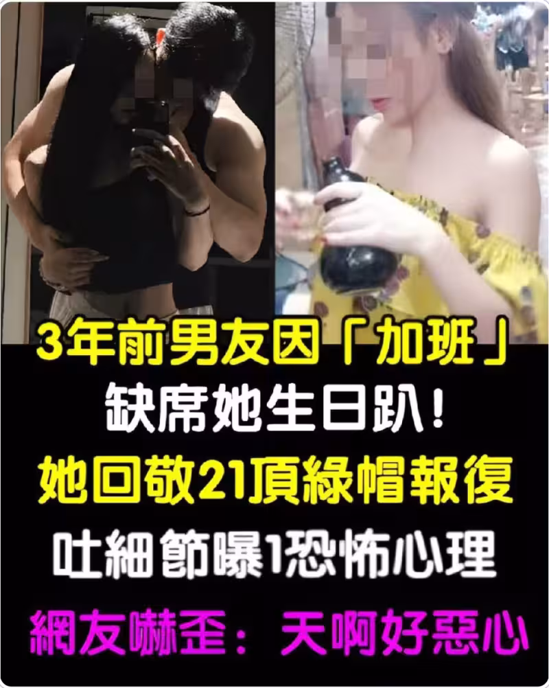 3年前男友「加班」缺席生日趴!她回敬「21頂綠帽報復」吐細節曝1恐怖心理,網友嚇歪:天啊好噁心