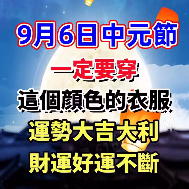 9/6日中元節,一定要穿「這個顏色的衣服」運勢大吉大利, 財運好運不斷!