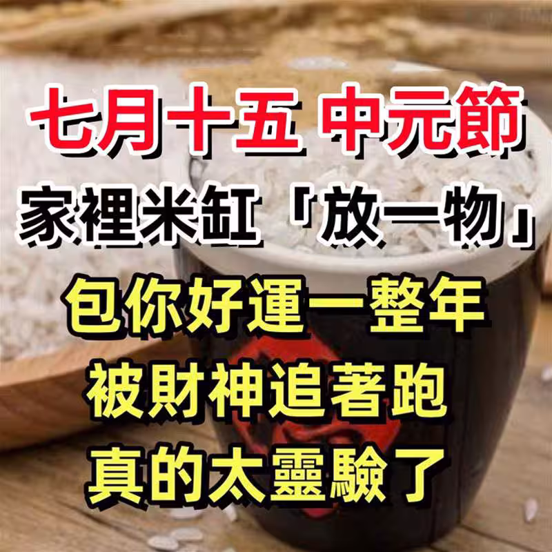七月十五中元節,家裡米缸「放一物」包你好運旺一整年! 被財神追著跑,真的太靈驗了