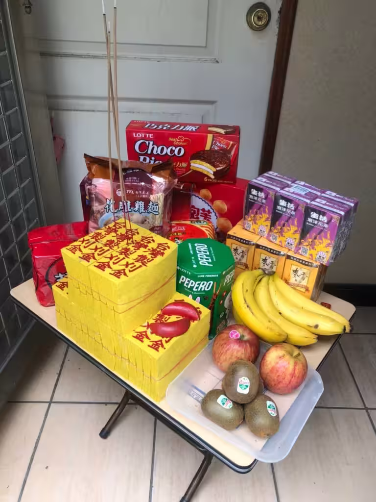 中元節用紅富士蘋果祭拜祖先和地基囑,並且按照正確的方法清洗擺放。