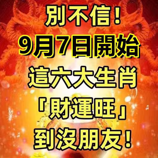 別不信!9月7日開始,這六大生肖「財運旺」到沒朋友