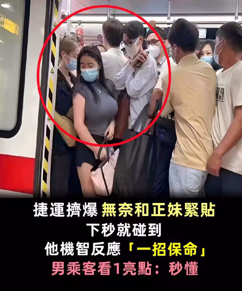 捷運擠爆,無奈和正妹緊貼「下秒就碰到」他機智反應「一招保命」男乘客看1亮點:秒懂