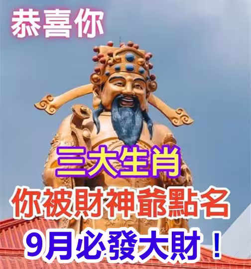 左手財神,右手貴人!「這三大生肖」被財神爺點名,9月必發大財