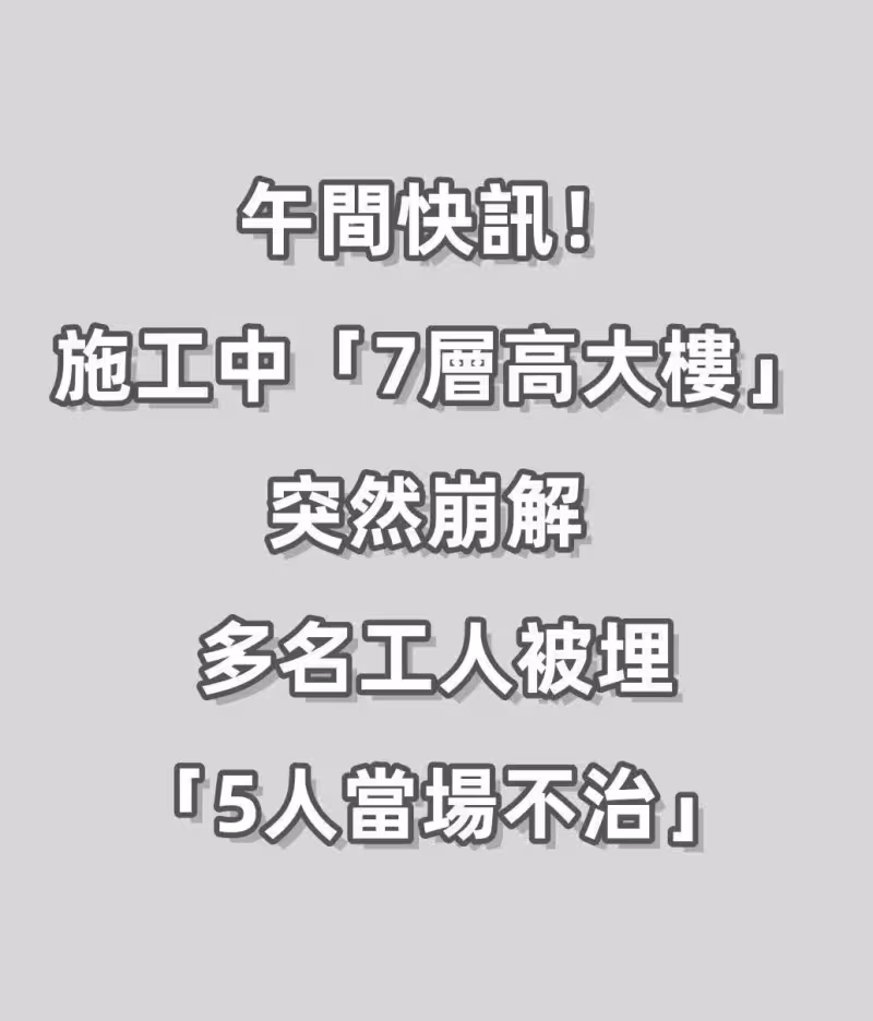 午間快訊!施工中「7層高大樓」突然崩解 多名工人被埋「5人當場不治」