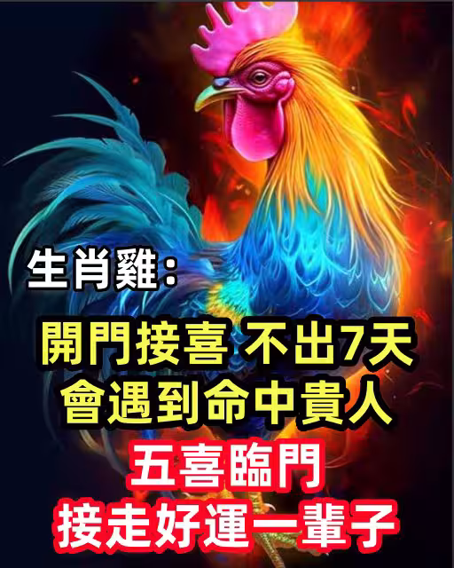 生肖雞:開門接喜,不出7天會遇到命中貴人,五喜臨門,接走好運一輩子!