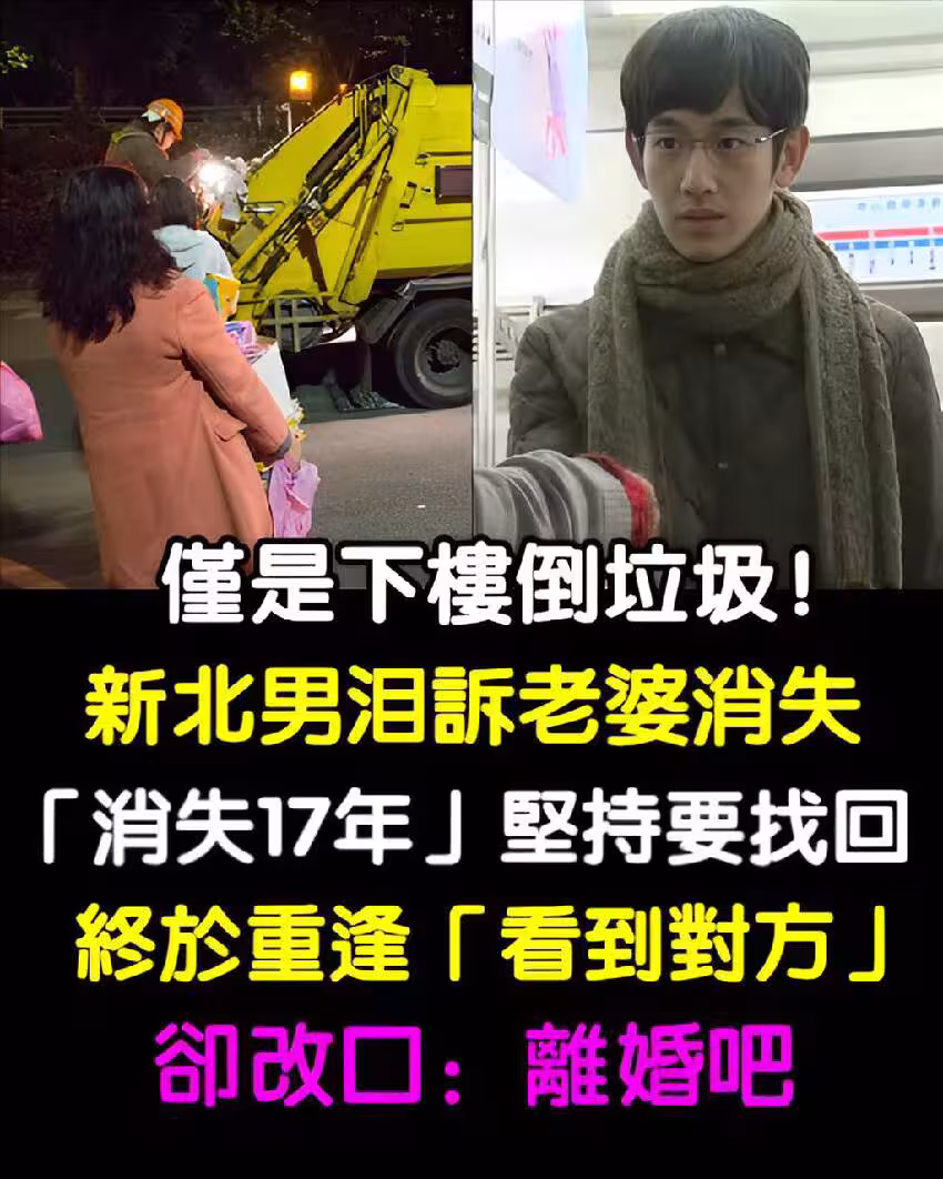 下樓倒垃圾後?!新北男淚訴老婆「消失17年」堅持要找回,終於重逢「看到對方卻改口」:離婚吧