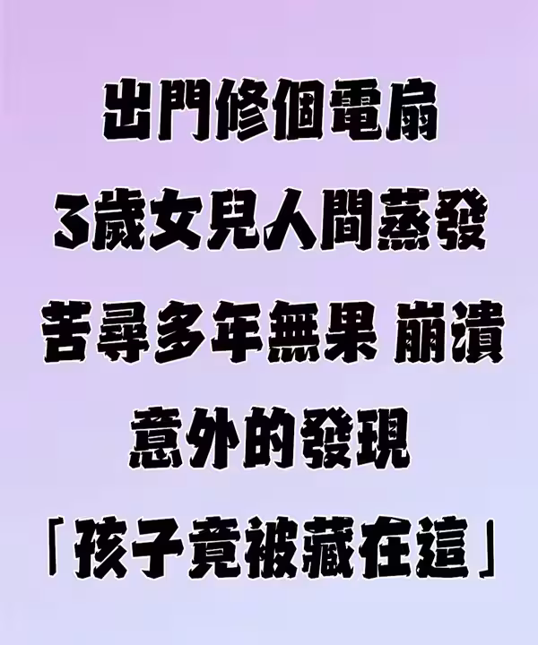 出門修個電風扇「3歲女兒人間蒸發」警察爸「苦尋23年無果」崩潰,竟發現「孩子被藏在這」