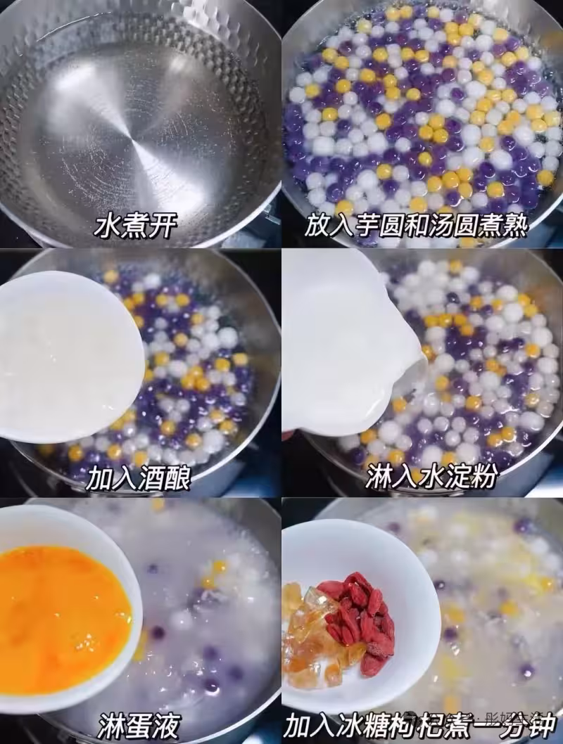 酒釀、雞蛋、糯米圓子、枸杞、冰糖
