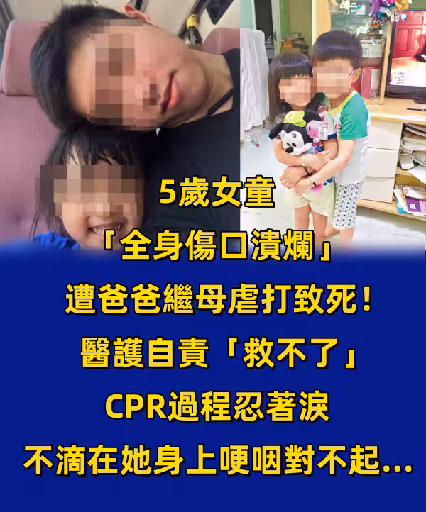5歲女童「全身傷口潰爛」遭爸爸繼母虐 打 致 死!醫護自責「救不了」CPR過程忍著淚不滴在她身上哽咽對不起