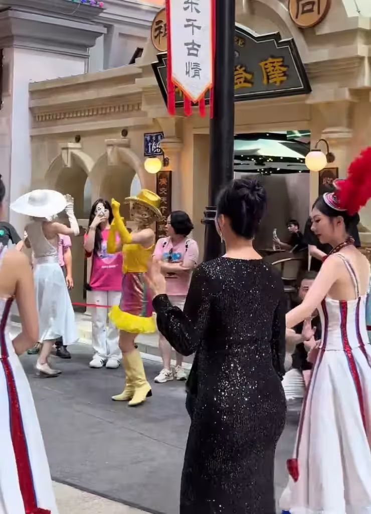 57歲翁虹景區跳舞「謀生」,穿緊身裙暴露真實身材,看著有150斤!