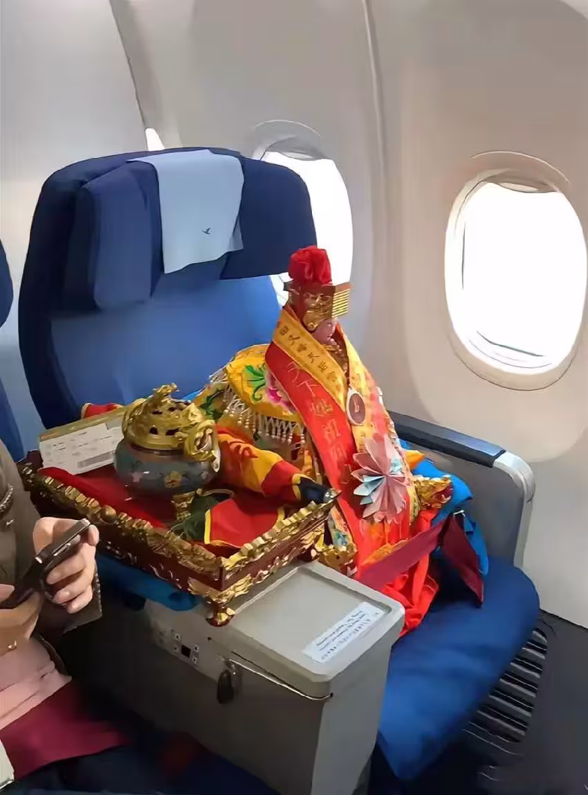男子搭班機驚見「媽祖就坐在隔壁」!!網吵「沒身份證怎買票」航司1句話「曬證」全跪了:祂真的有