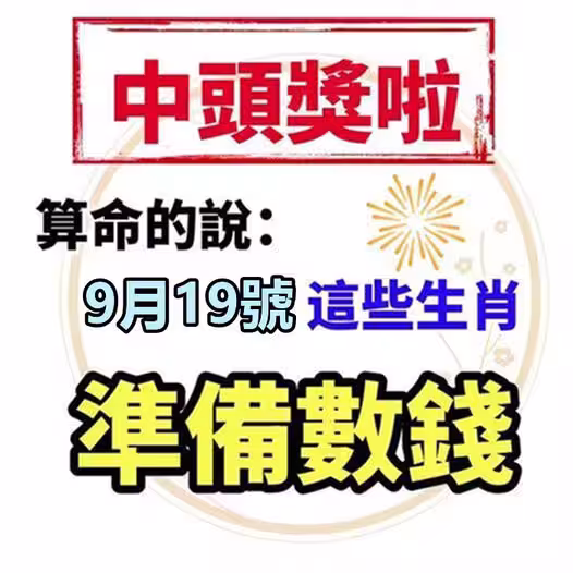 明天 「9月19號」 三生肖 橫財最旺 發久久~