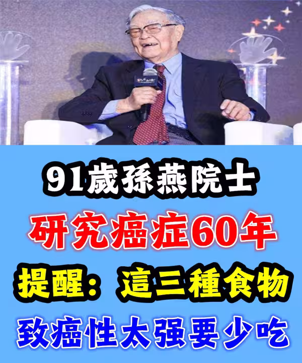 91歲孫燕院士,研究癌症60年,提醒:三種食物致癌性太強,要少吃