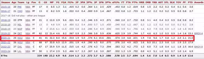 此外伍德還具備同位置大部分球員所不具備的中投能力,當然這也是一度被稱為「小濃眉」的主要原因。只是和三分一樣,近三季也是呈45.5%、41.7%、34%的明顯下降趨勢。進攻端終結效率大幅下降,這是其一。