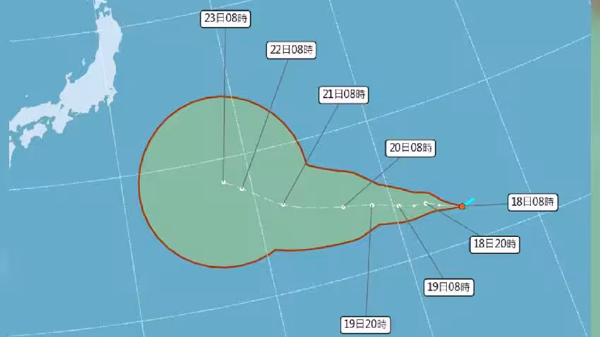 中央氣象署表示,原位於威克島西北方海面的熱帶性低氣壓TD22,18日20時發展為輕度颱風,編號第19號颱風浣熊(國際命名:NEOGURI),預測未來朝西北西方向往日本移動,對台灣無直接影響。