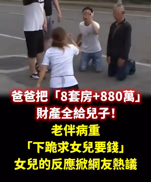 爸爸把「8套房+880萬」財產全給兒子! 老伴病重「下跪求女兒要錢」女兒的反應掀網友熱議!