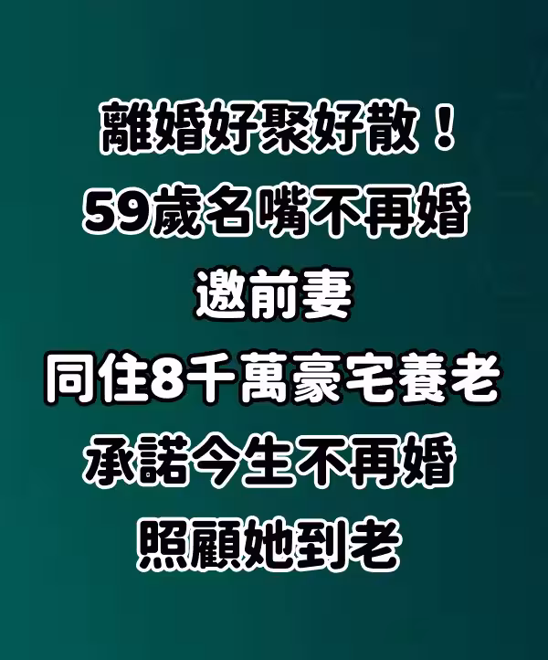 離婚好聚好散!59歲名嘴不再婚「邀前妻同住8千萬豪宅養老」承諾今生不再婚,照顧她到老!