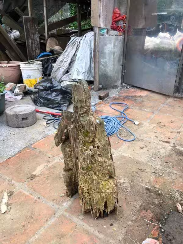 好神,遭白蟻咬10年枯木竟變濟公佛像,眼尖網友發現手上還有驚人細節,根本神跡