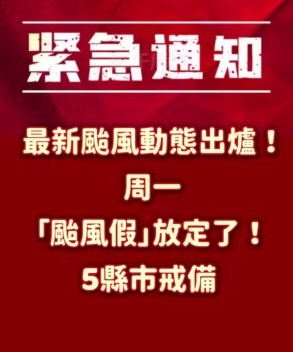 快訊/最新颱風動態出爐了! 周一「颱風假」放定了! 5縣市戒備