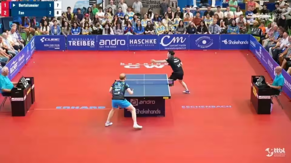 樊振東德國杯八分之一決賽獲全場最佳,得票率74%