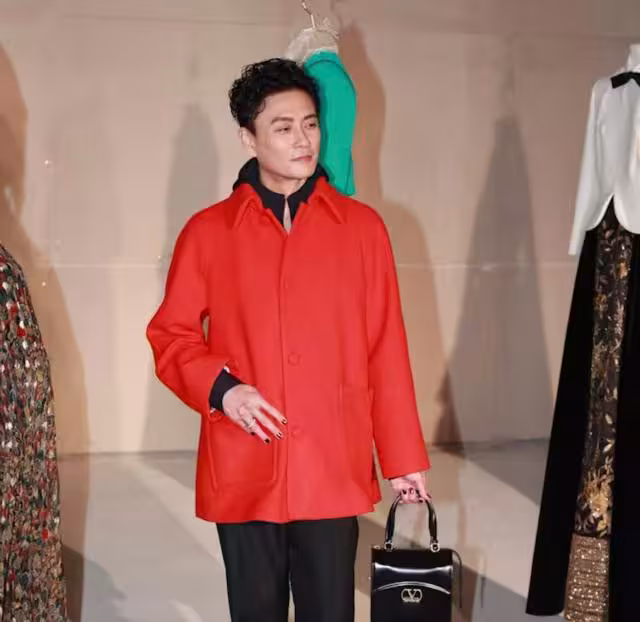 近日黃宗澤現身時尚活動的時候,就以一身紅色的大衣亮相活動,下身就搭配了黑色的喇叭褲以及豹紋尖頭鞋,手上拿著一個黑色的女裝手袋。