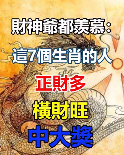 財神爺都羨慕:這7個生肖的人正財多,橫財旺,中大獎