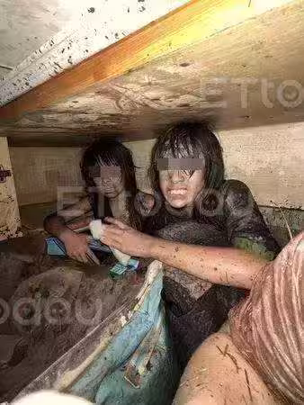 ▲▼水淹進家裡時根本逃不掉,家中孩子瑟縮躲在衣櫃里。(圖/記者劉邠如翻攝)