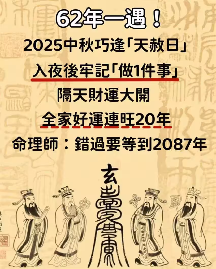 62年一遇!2025中秋巧逢「天赦日」入夜後牢記「做1件事」隔天財運大開,命理師:錯過要等到2087年!