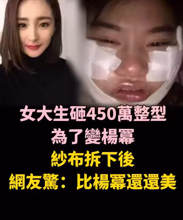 女大生「砸450萬整型」為了變楊冪, 紗布拆下後,驚:比楊冪還還美