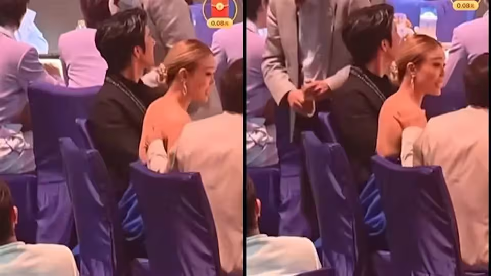 不過事後有網友在Threads貼出影片,畫面中,成龍下台後與身穿大露背晚禮服的容祖兒同桌聊天,成龍原本搭在容祖兒椅背上的手,突然滑到她的美背上,並向上掃至其肩膀位置。之後身為容祖兒老闆的楊受成見狀即站起來,並走到容祖兒身邊拉走她換位置。