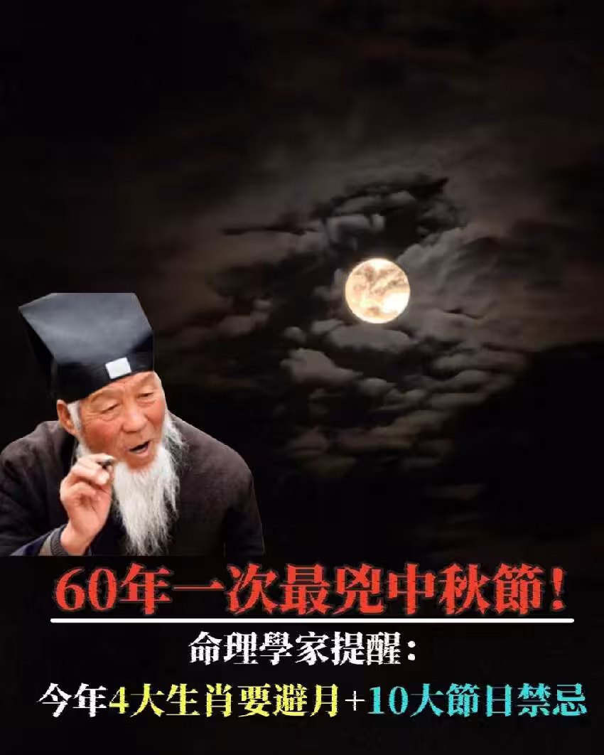 台灣命理學家小孟老師日前在其FB專頁發放短片,提醒今年中秋節有幾個生肖要避月。