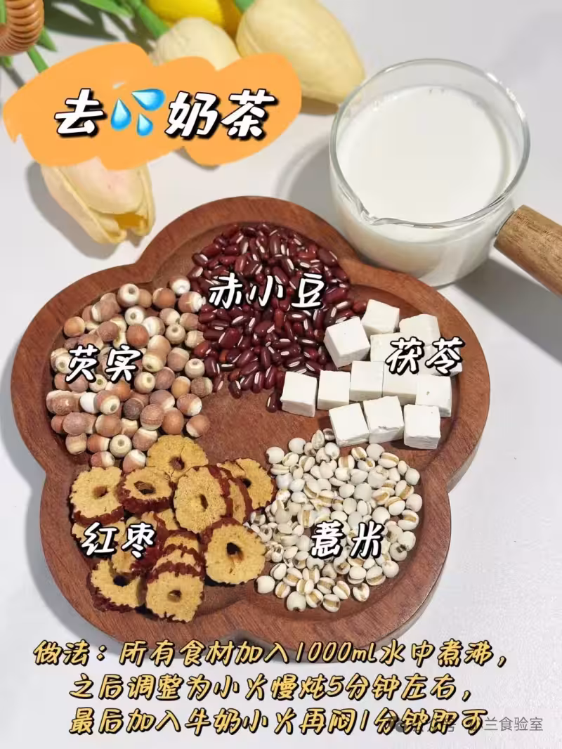 🌟🌟配:赤小豆10克、茯苓8克、芡實8克、薏仁8克、紅棗5克。