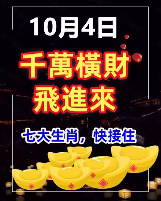10月4日千萬橫財飛進來,七大生肖快接住!