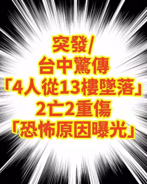 突發/ 台中驚傳「4人從13樓墜落」!2亡2重傷 「恐怖原因曝光」