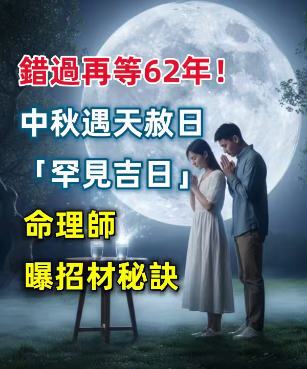 命理專家楊登嵙提醒,今年中秋節在10月6日正逢天赦日,是開運旺財的罕見吉日,錯過這次機會得再等62年。