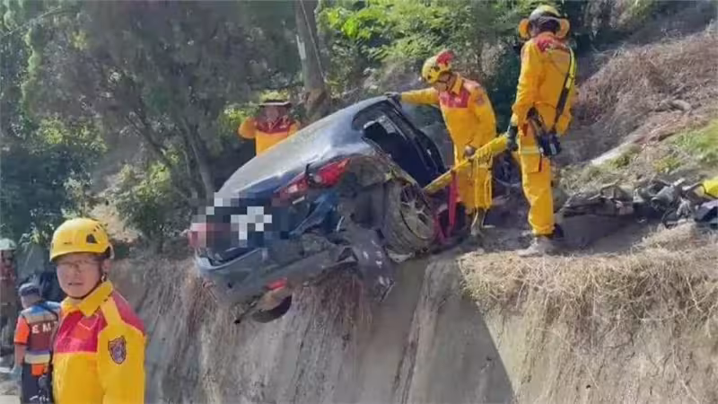 回程時楊姓少年騎車在前方開路,蘇姓少年則駕車載著匡姓少年跟在後頭,然而疑似在下坡路段,後方的18歲蘇男沒減速,而追撞機車,導致騎士昏迷送醫不治,而轎車撞斷電線桿後,沖落道路邊坡,卡在護岸上扭曲變形,搜救人員出動破壞工具,才順利破門將蘇男、匡男救出送醫。