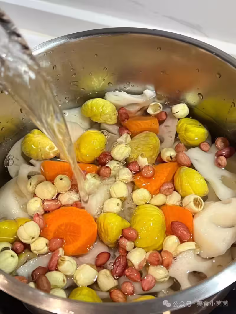 4. 大火煮沸後轉小火,慢煲40分鐘至食材軟糯、湯色清潤即可。