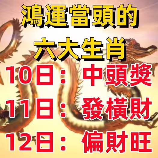 鴻運當頭的六大生肖:10月10日中頭獎 ,11日發橫財 ,12日偏財旺