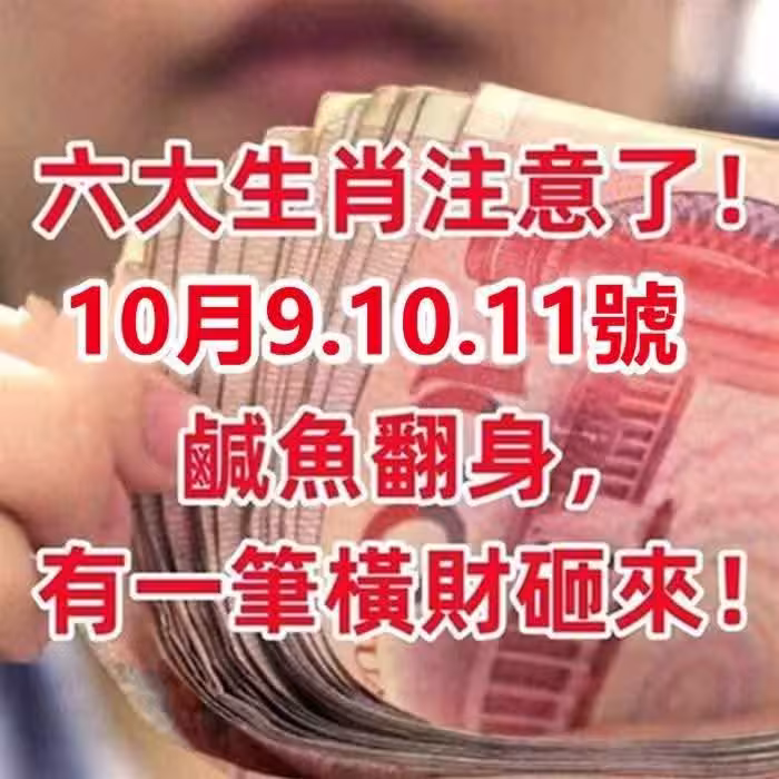 10月9.10.11號鹹魚翻身,有一筆橫財砸來的六大生肖。