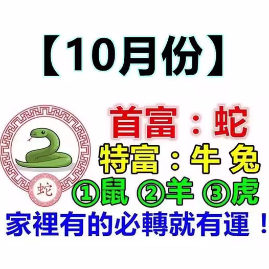 (蛇牛兔鼠羊虎)家裡有的必轉,10月就有運