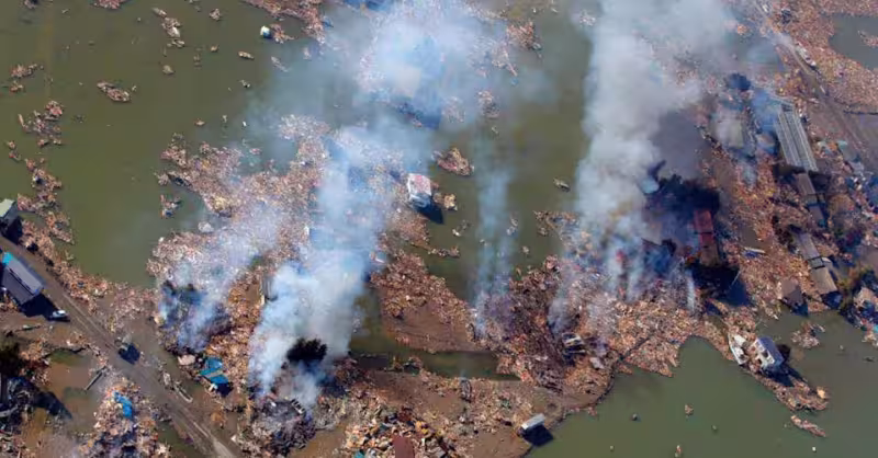 日本2011年3月11日發生規模9.0地震,伴隨巨大海嘯重創東北地區。(圖/美聯社)