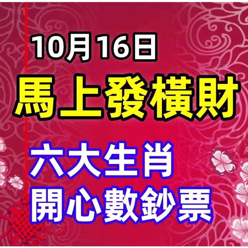 10月16日馬上發橫財 ,六大生肖開心數鈔票