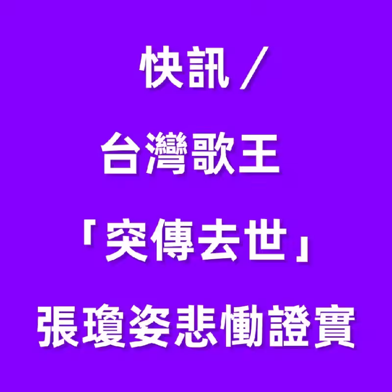 快訊/台灣歌王 「突傳去世」!張瓊姿悲慟證實~