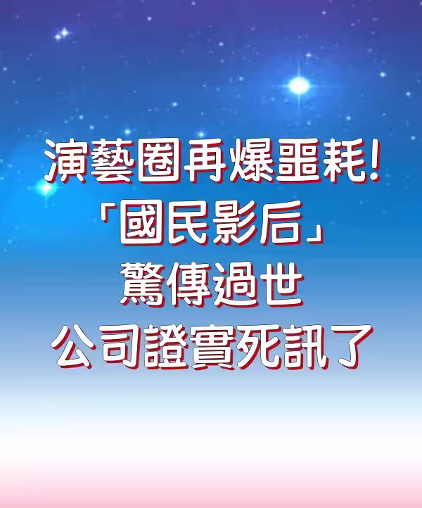 演藝圈再爆噩耗!「國民影后」驚傳過世 公司證實死訊了!