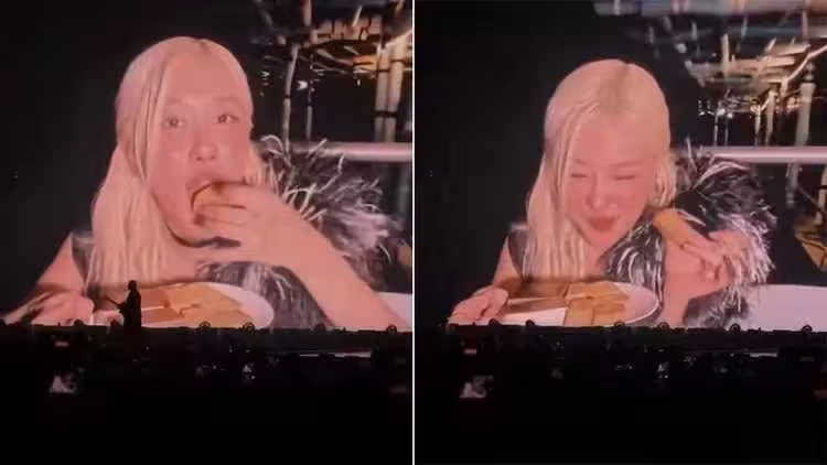 BLACKPINK最近在高雄世運主場館舉辦巡演,約10萬名「黑粉」齊聚高雄朝聖,18日晚間,成員ROSÉ趁著演出前的空檔,陶醉吃起美味鳳梨酥,配上1杯台灣人熟悉的50嵐飲料,讓許多台灣粉絲都想和偶像吃上同款點心。