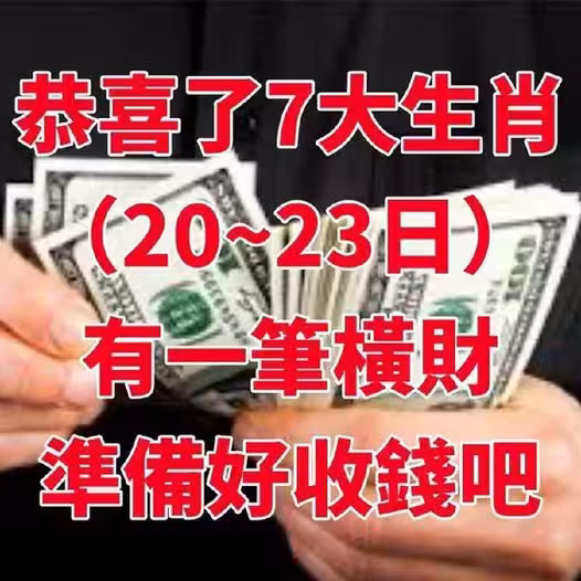 恭喜了7大生肖,在未來三天( 10月20~23日)即將有一筆橫財,準備好收錢吧